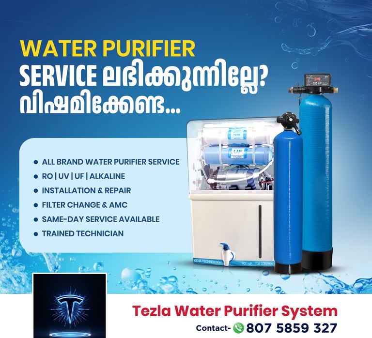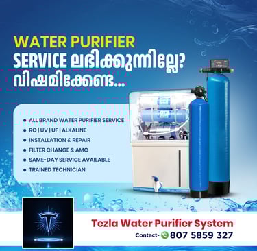 Tezla Water Purifier System provides reliable RO plant installation, purifier sales & service, iron removal systems, softeners, vessel filters, and complete water treatment solutions across Kerala. We ensure safe and clean drinking water for homes and businesses.